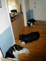 clean house. Asleep in the foyer while I do the other rooms. Then I move